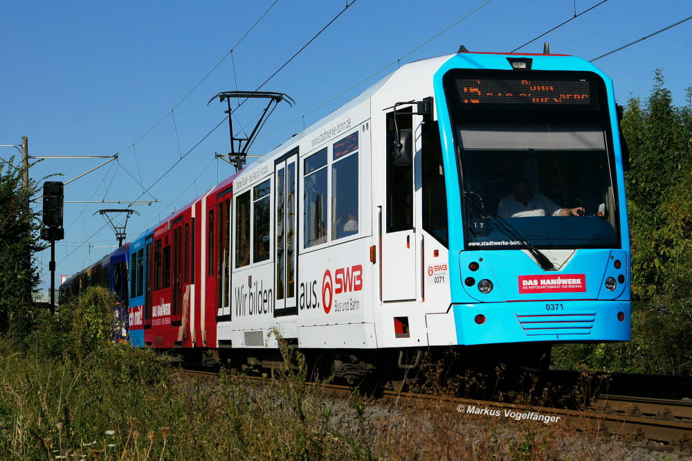 Am 16.7.13 konnte ich TW 5148 und TW 5??? als Linie 3 Fahrtrichtung Mengenich bei der Einfahrt in die Haltestelle "Wolffsohnstraße" fotografieren. Johannes Schwarz