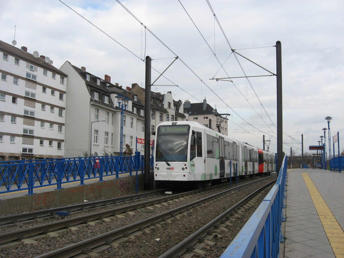 Am 5.6.07 konnten TW 5103 unterwegs mit einem weiteren Wagen vom gleichen Typ unterwegs als Linie 4 Richtung Schlebusch in der Haltestelle "Hans-Böckler-Platz / Bf. West" abgelichtet werden. Johannes Schwarz