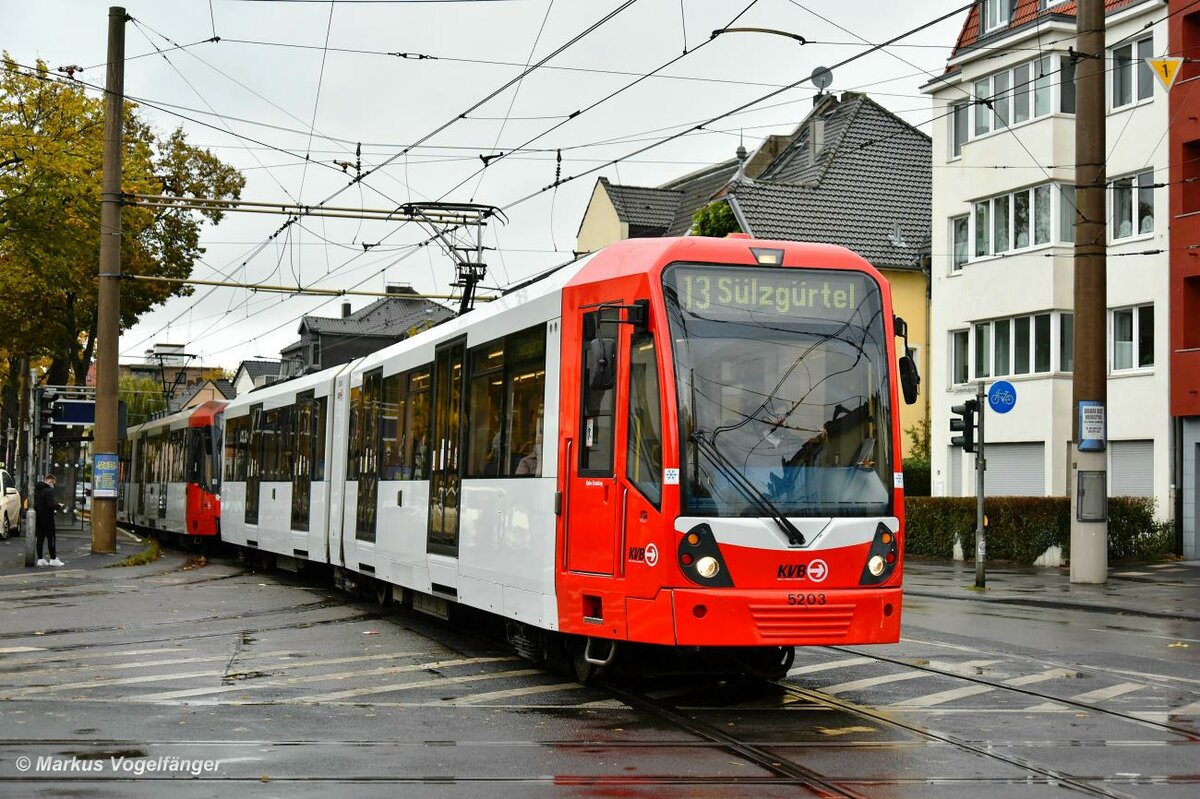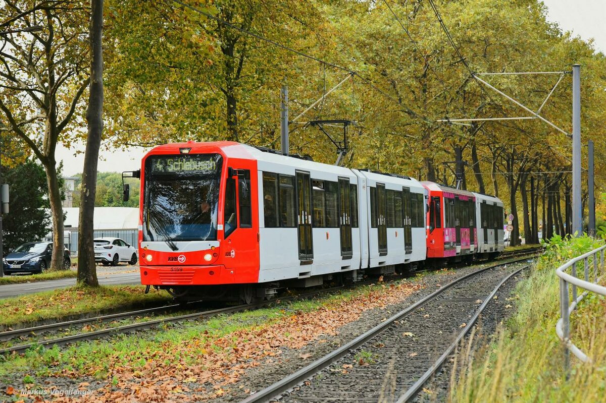 5159 hat eine Neulackierung in die aktuellen KVB-Farben erhalten. Hier zu sehen kurz vor der Haltestelle Westfriedhof in Köln am 18.10.2021. Markus Vogelfänger