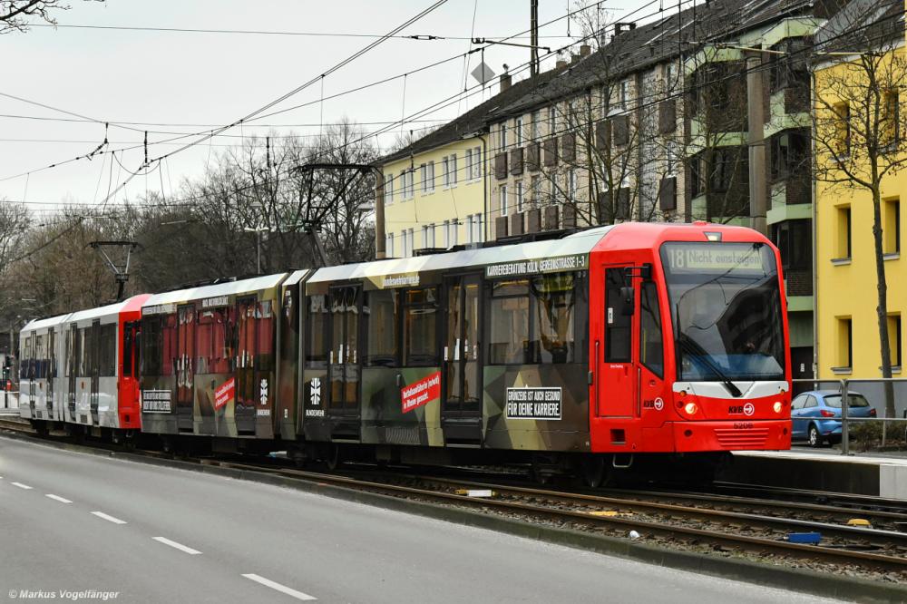 5212 wurde wie auch schon 5136 die Ganzreklame für die Bild-Kampagne "Für Euch" entfernt. Hier zu sehen wieder in den aktuellen KVB-Farben auf der Margaretastraße am 08.04.2021. Markus Vogelfänger