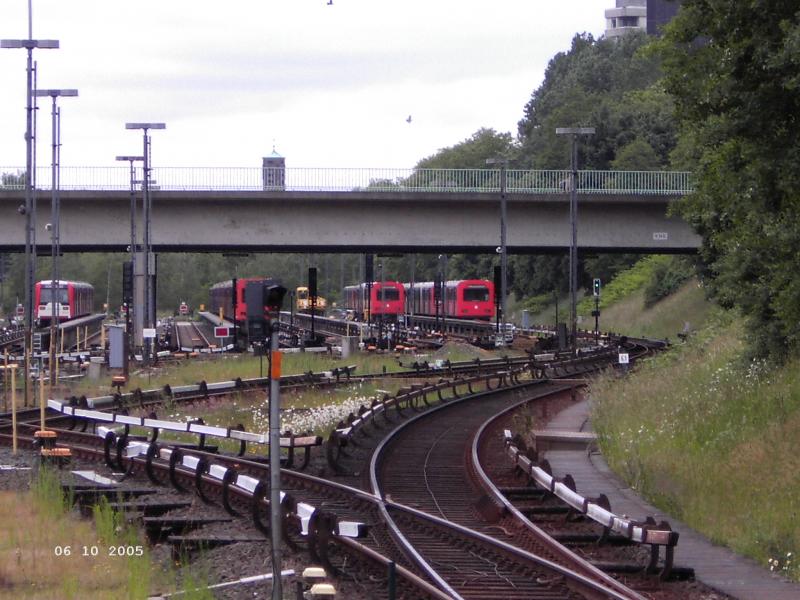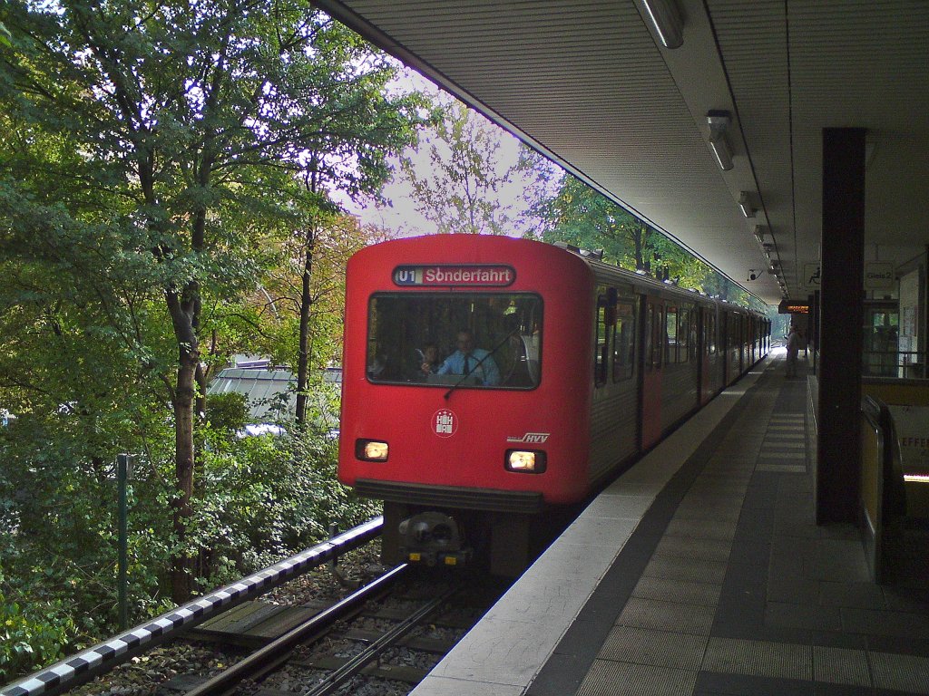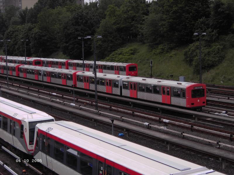 Ein DT II steht mit Zielanzeige "Hafencity Universität" im Bahnhof Barmbek. Diese Haltestelle an der in Bau befindlichen neuen U-Bahn Linie gibt es noch nicht. Wenn sie dann eines Tages mal fertig ist, sollte der DT II eigentlich Geschichte sein. Tschä. Da stimmt wohl irgendwas in der Planung nicht.