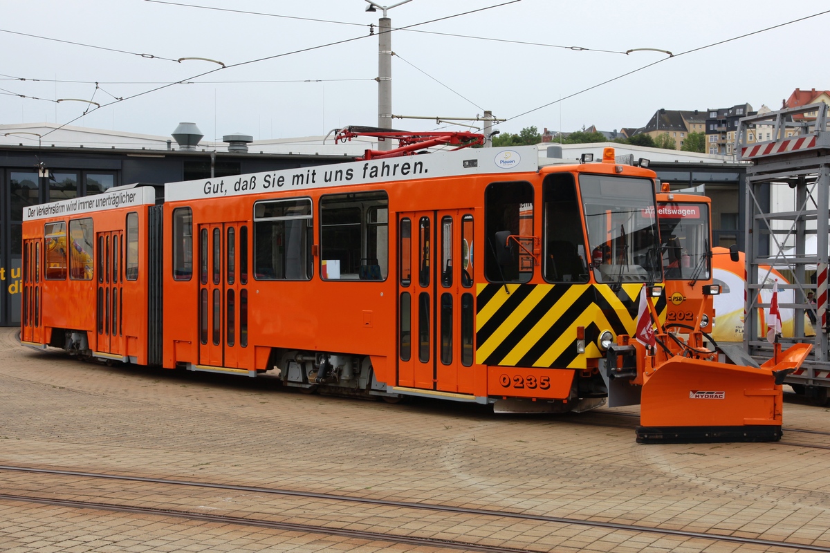 Der Schienenschneepflug 0235 (ČKD Praha Smichov, Bauj. 1988, Umbau 2011 aus Tw 235) zum Tag der offenen Tür, im Bh der PSB, am 07.09.2019. Rüdiger Ulrich