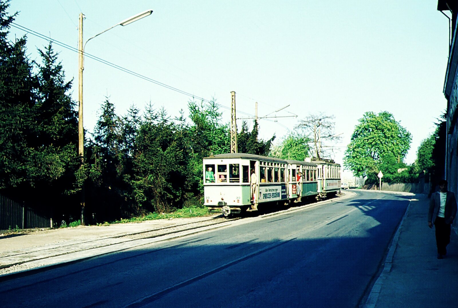 Welch schöne Museumsbahn sie hätte werden können! Ab Nellingen sollte auf der Route der früheren Überlandstraßenbahn Esslingen-Nellingen-Denkendorf eine Museumsstraßenbahn eingerichtet werden, aber das Vorhaben war leider zum Scheitern verurteilt. Im Lokschuppen von Nellingen wurden daher Straßenbahnschätze der Überlandstraßenbahn aufbewahrt, so auch Beiwagen 21 (B2 MF Esslingen 1926) und TW 2 (T4 MF Esslingen 1926).