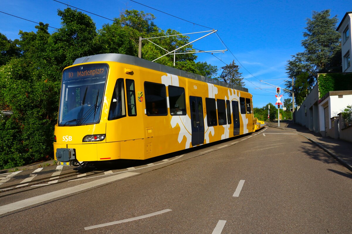 Zahnradbahn Stuttgart__Das ganz seltene Ereignis der Doppeltraktion bei der Zb. Heute aus Anlaß der Tw-Taufen zur Aufwärts-Beförderung der Prominenz erforderlich . . . 13-05-2023 Klaus-Erich Lisk