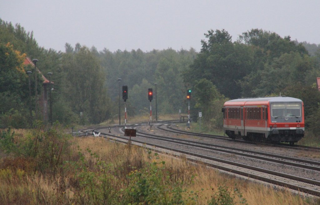 5.10.2012 Löcknitz. 928 654 / RE6 nach Stettin verlässt in strömenden Regen den Bahnhof vorbei an alten DR Hl-Signalen. Die Umstellung auf ESTW-Technik steht laut EBA-Screening bevor. matthias manske
