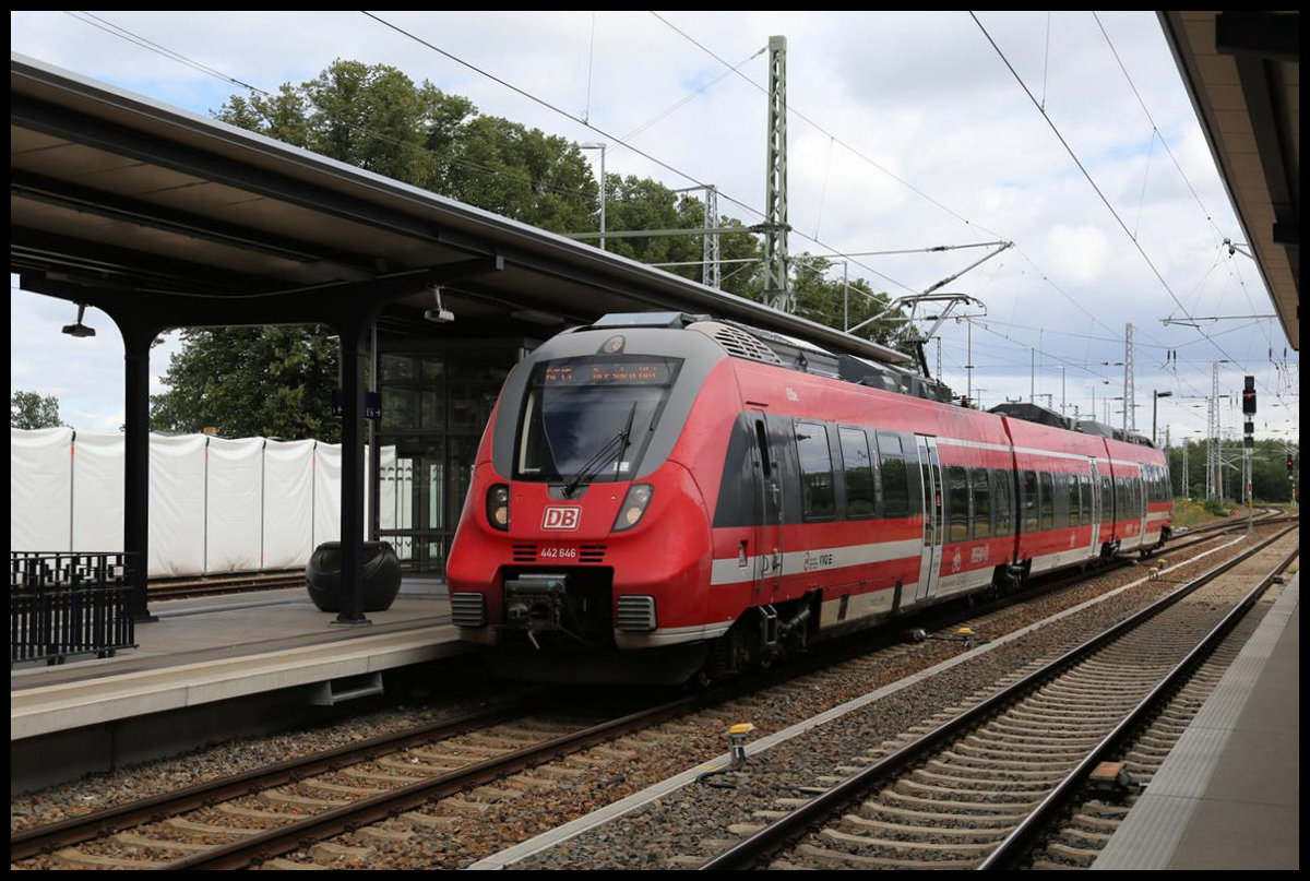 DB 112152-4 fährt hier am 6.10.2025 nach kurzem Halt in Lampertswalde um 9.42 Uhr als RE 14 weiter nach Hoyerswerda.