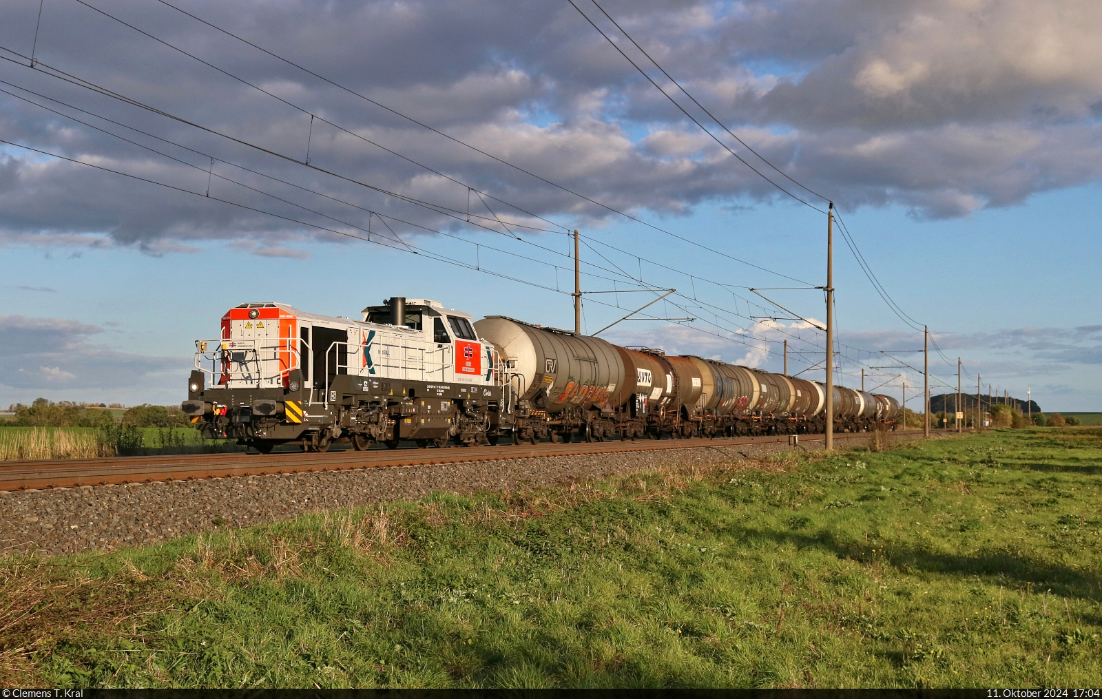 Kesselzug mit 4185 132-2 "Christa" (92 80 4185 132-2 D-NXRL | Vossloh DE 18) unterwegs bei Ovelgünne Richtung Helmstedt.
