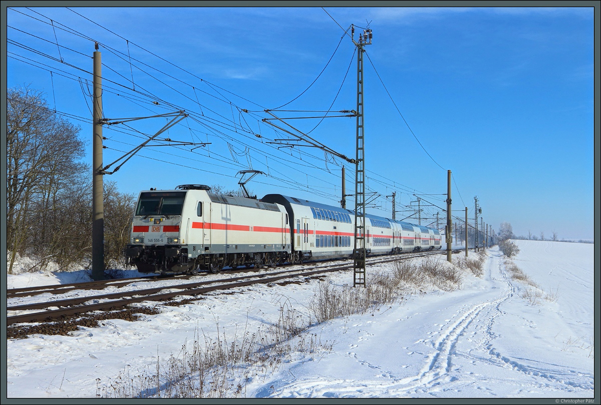 Die IC 2 erreichten leider nicht die Zuverlässigkeit der Vorgängerzüge. So muss 101 011-5 am 14.02.2021 die Garnitur 2866 (mit 146 564-0) Richtung Magdeburg schleppen. Christopher Pätz