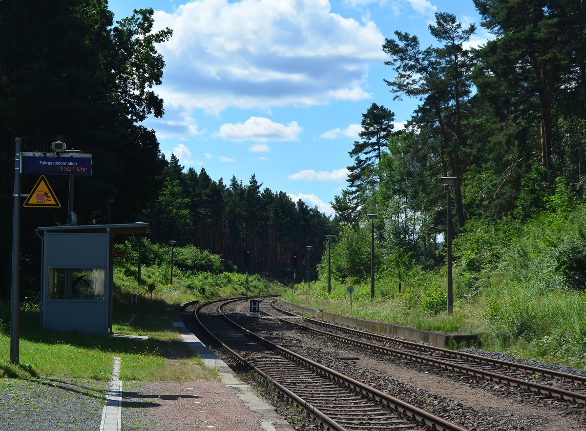 Heute ist der Bahnhof jedoch nur noch Bedarfshalt. Bei Mitfahrt muss man sich beim ansässigen Fahrdienstleiter melden (hier im Bild rechts).