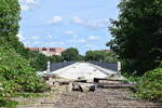 Der große Viadukt zwischen Sellerhausen und Anger Crottendorf wurde 2021 bereits umfassend saniert und wird künftig als Radweg weiter genutzt. Blick in Richtung Sellerhausen durch den Bauzaun.