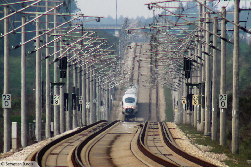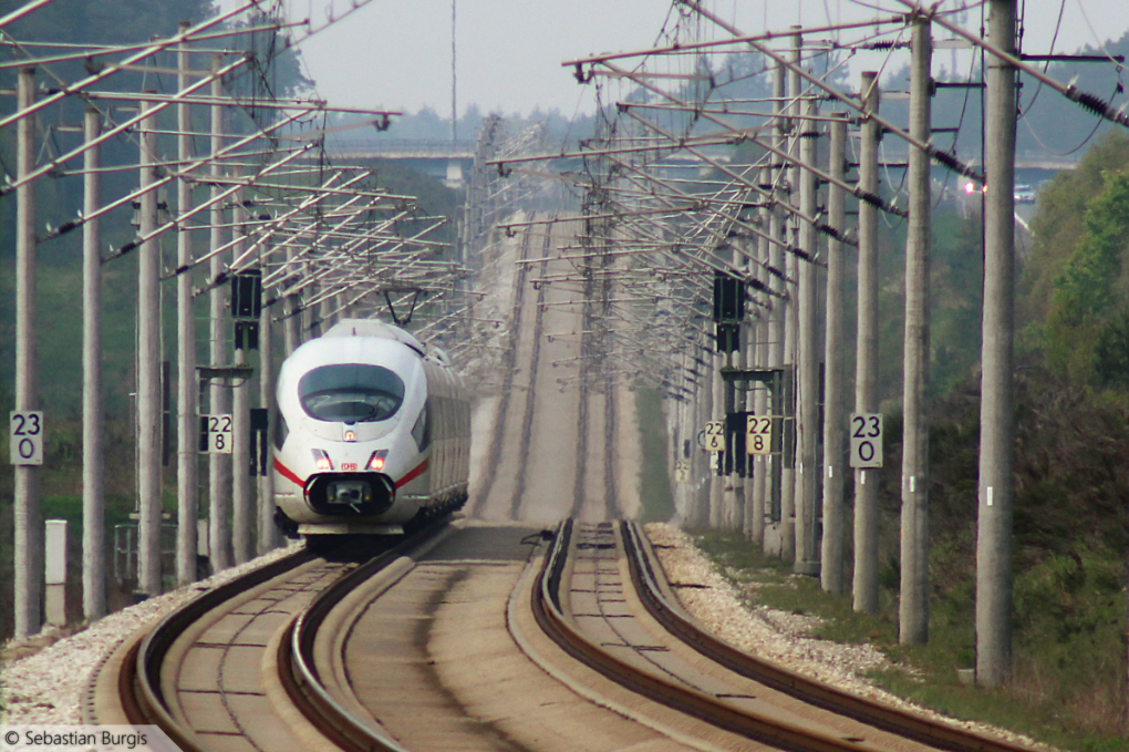 Aus seiner "Schießbude" heraus, die praktischerweise direkt an der Schnellfahrstrecke Nürnberg - Inglolstadt liegt, hat ein "Jäger" aus dem Fränkischen Seenland diesen ICE 3 auf dem Weg nach München "erlegt" ;-) Passiert ist das Ganze am 06.04.2014. Sebastian B.