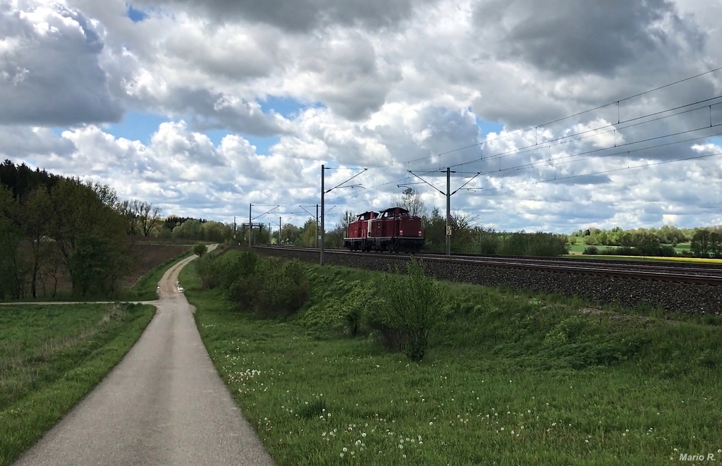 Ein V100-Doppel der Bayernbahn, bestehend aus 212 284 und einer unerkannt gebliebenen altroten V100, konnte am 14.5.21 bei Asbach in Richtung München fahrend aufgenommen werden. Mario Rossi