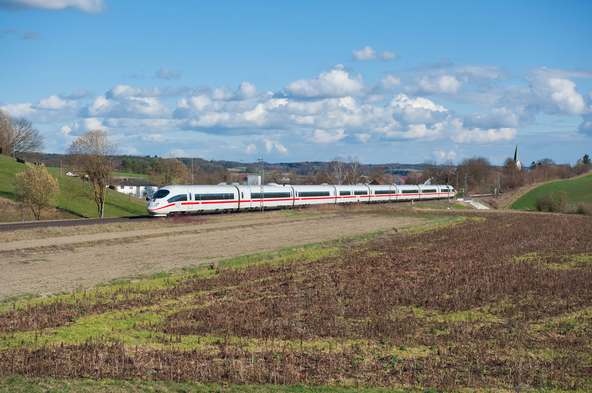 Am 19. April 2019 konnte ich bei Fahlenbach den DGS 43820 auf seiner Fahrt nach Bremen Grolland ablichten. Es führte 185 662 - neben der 664 einer der beiden Stammloks für diese Leistung zu dieser Zeit. Rechts im Bild ein für diese Region typisches Spargelfeld. Christoph Schneider