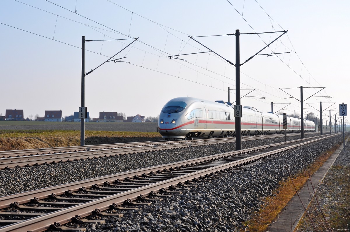 Ein Schnapp - Nach- Schuss auf einen ICE 3, der am Bahnhof Petershausen am 3.3.2015 völlig unerwartet an mir Richtung Ingolstadt im Gegenlicht vorbeizischt… keine perfekte Aufnahme, aber der Anblick ist für mich jedenfalls ein Highlight. Brigitte Meyer