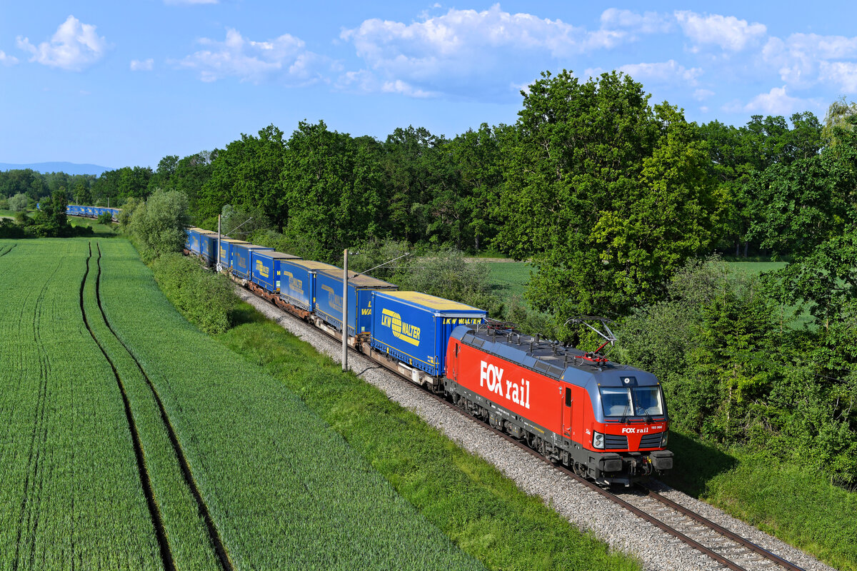Das ungarische Unternehmen FOXrail hat im Herbst 2022 eine Verstärkung der eigenen Lok-Flotte in Form von 193 966 erfahren. Am 29. Mai 2023 konnte besagte Maschine vor dem KLV-Zug DGS 40656 von Episcopia Bihor nach Wanne-Eickel bei Wallersdorf in Niederbayern fotografieren. In der Vergangenheit wurde diese Leistung mit Vectrons von VTG Retrack bespannt. Der hier gezeigte Zug musste aufgrund von Bauarbeiten an diesem Tage einen Umweg über Landshut und München fahren. Christoph Schneider