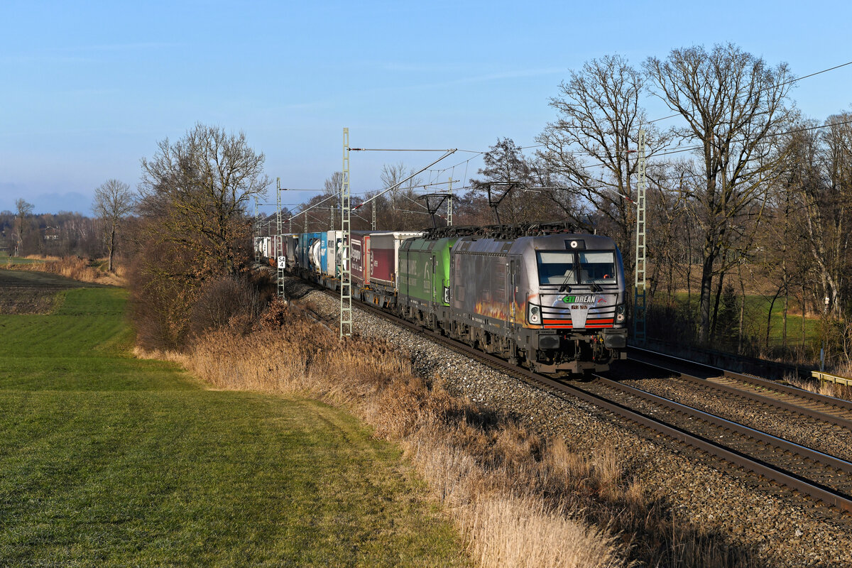 Leider starrend vor Dreck war das interessante ELL-Vectron-Tandem, welches mir am 22. Dezember 2021 bei Hilperting mit dem DGS 43101 auf der Fahrt nach Verona Q.E. begegnete. Die sogenannte ELLOREAN 193 282 und die SHINING EXAMPLE 193 283 werden inzwischen hauptsächlich im Italien-Verkehr über die Schweiz eingesetzt und sind auf der Brenner-Achse nur noch selten zu beobachten. Christoph Schneider