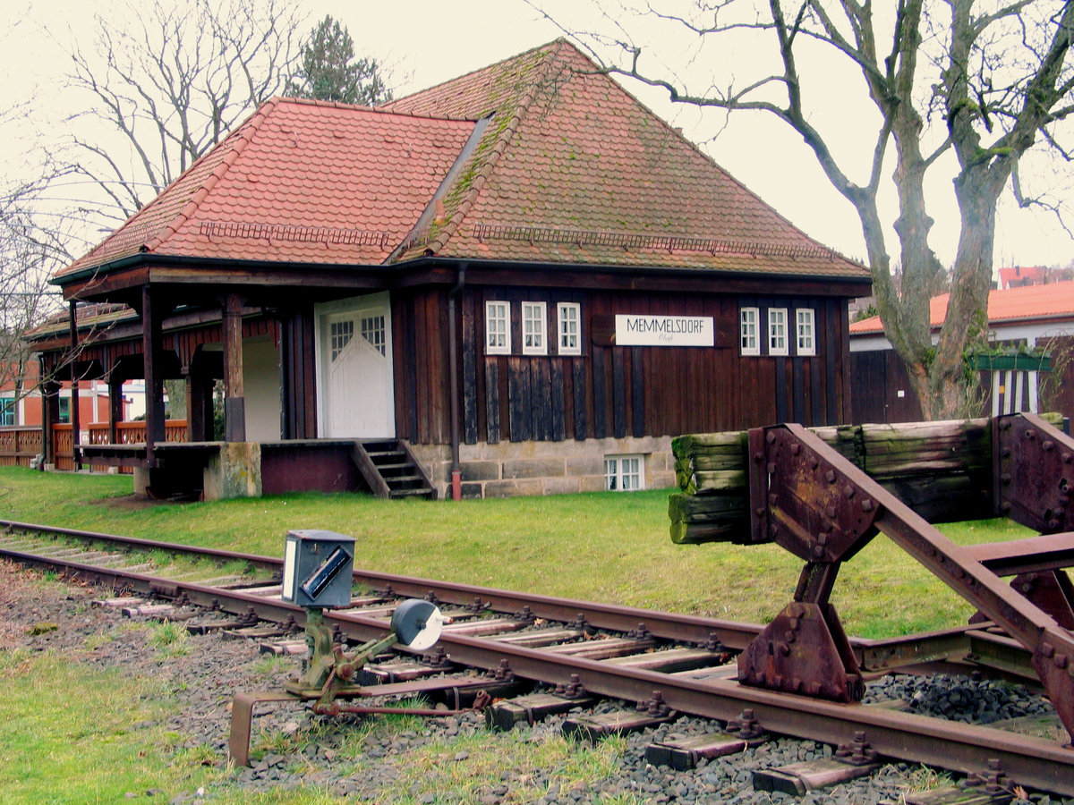 14. Februar 2007, Das Bahnhofsgebäude von Memmelsdorf an der abgebauten Strecke Bamberg - Scheßlitz (KBS 825). Es wurde von einem (oder dem) Memmelsdorfer Gesangsverein übernommen. Jürgen Krause