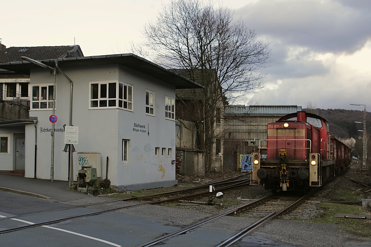 Mit der nachmittäglichen Übergabe nach Ennepetal-Altenvoerde ist die 294 671-2 am 12.02.2020 in Gevelsberg unterwegs. Der planmäßige Personenverkehr auf der Ennepetalbahn ist seit dem 28.09.1969 Geschichte. Horst Lüdicke