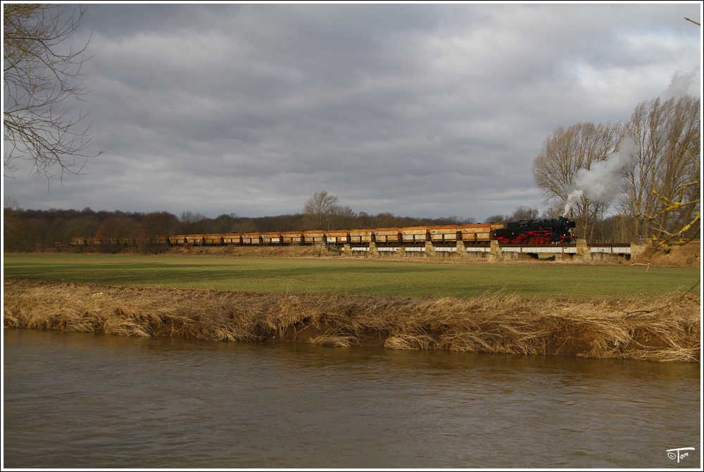 52 8154 beim Plandampfevent "Dampf trifft Kohle 2" mit dem 2400 Tonnen schweren Kohlezug von Zeitz Pbf nach Meuselwitz.