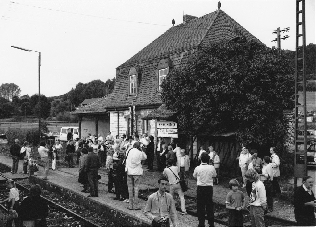 Blick aus dem letzten planmäßigen Reisezug auf die Menschenmenge in Berching am 25.9.87. Wäre dort immer so viel los gewesen, hätte die Bundesbahn die STrecke sicher nicht stillgelegt... Jörg Schäfer