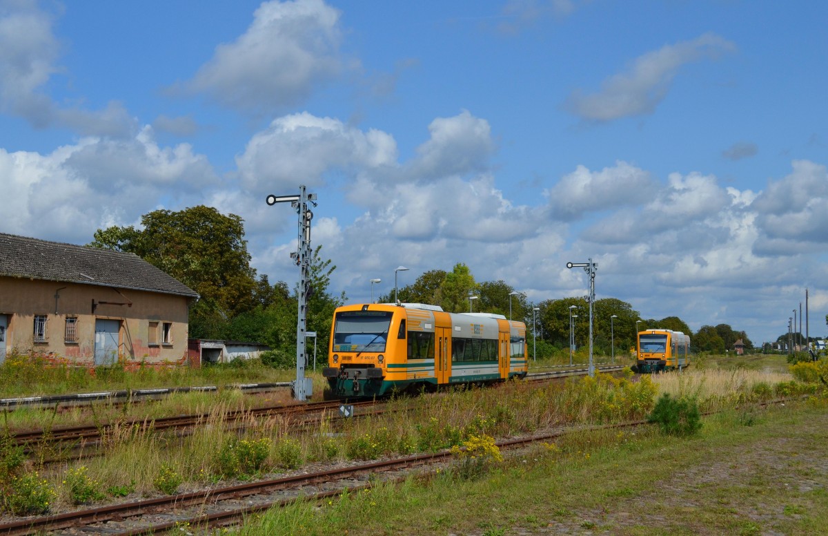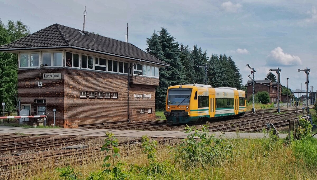 An den Sommerwochenenden verlängert die ODEG die RB 15 (Waren (Müritz) - Inselstadt Malchow) nach Plau am See. Dadurch kommt es auch wieder zu Zugkreuzungen in Karow. Diese sind nicht so spektakulär wie 1992, als sich nachmittags Züge aus allen 5 Richtungen trafen. Aber mit den beiden Triebwägen der ODEG ist am 02.07.2023 zumindest ein Anfang gemacht. Oliver Kuß