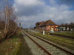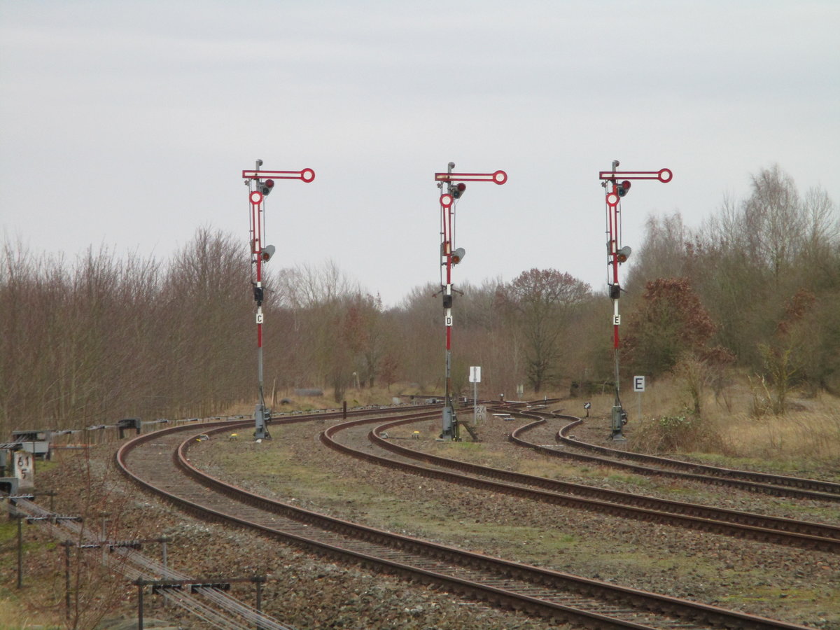 Der Bahnübergang am Stellwerk B1 in Malchow stellt eine elektrische Vollschrankenanlage eVS 63 der WSSB dar. Sie wurde durch Umbau der Blinklichter an das westdeutsche Erscheinungsbild angeglichen. Im ehemaligen Stellwerk B1 sitzt heute der Zugleiter der RegioInfra, der auch den BÜ bedient. (Malchow, 24.08.2025) Christopher Pätz