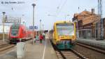 Dunkle Wolken schweben wortwörtlich über der Südbahn, denn im Dezmeber 2014 wird der Abschnitt Parchim - Malchow (Meckl.) eingestellt. Auch über OE 79678 (WPM – WH) standen am 21.08.2014 dunkle Wolken, der Regio-Shuttle der ODEG jedoch fuhr bei Sonne am alten Stellwerk in Parchim vorbei. Rick Eichner