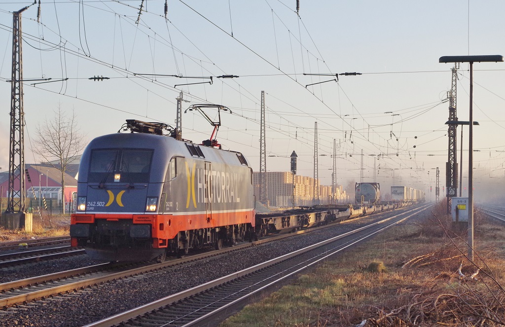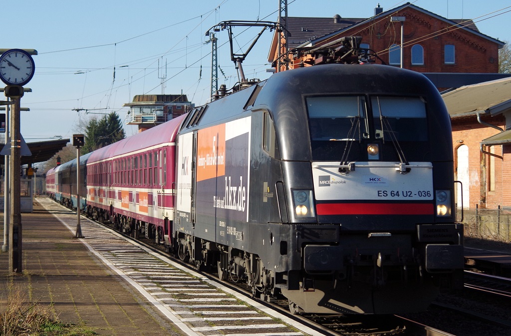 MRCE Taurus ES 64 U 2 - 030 ist am 28.3.2014 mit dem HKX 1800 nach Köln unterwegs.
