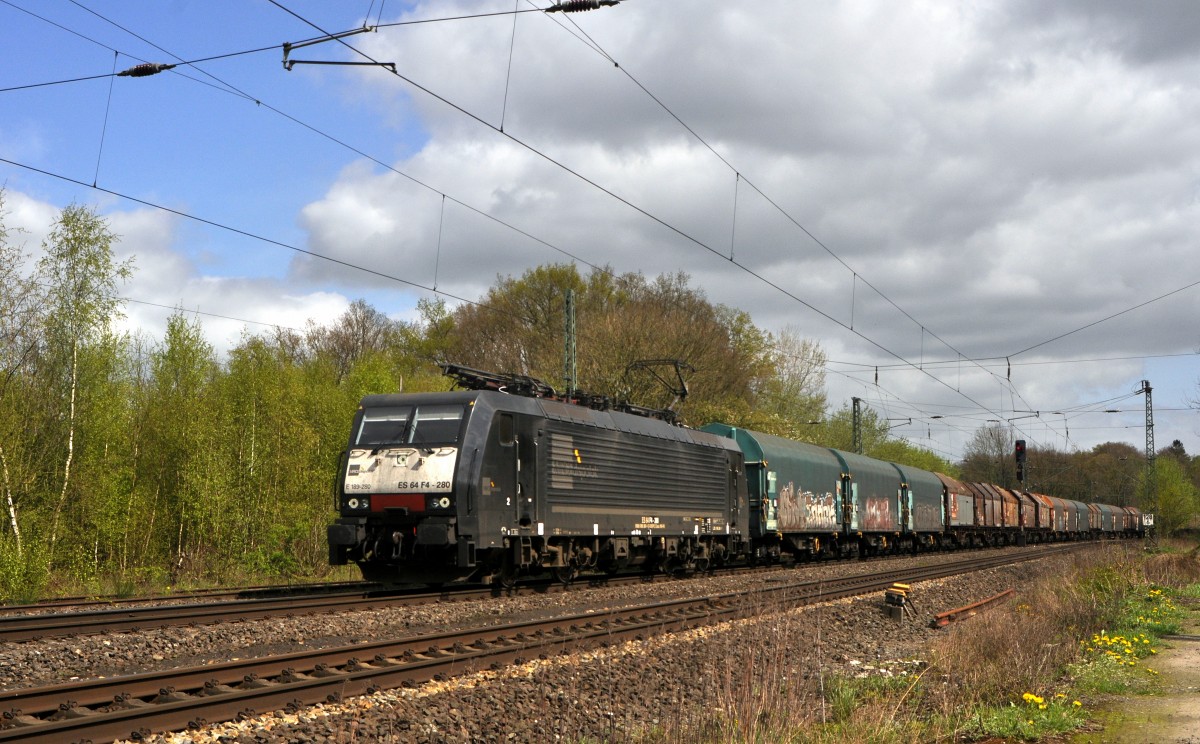 MRCE ES 64 F4-280 (E 189 280), vermietet an TX Logistik, befindet sich am 13.04.14 in Vehrte mit einem gemischten Güterzug auf dem Weg Richtung Osnabrück. Reinhard Kühn
