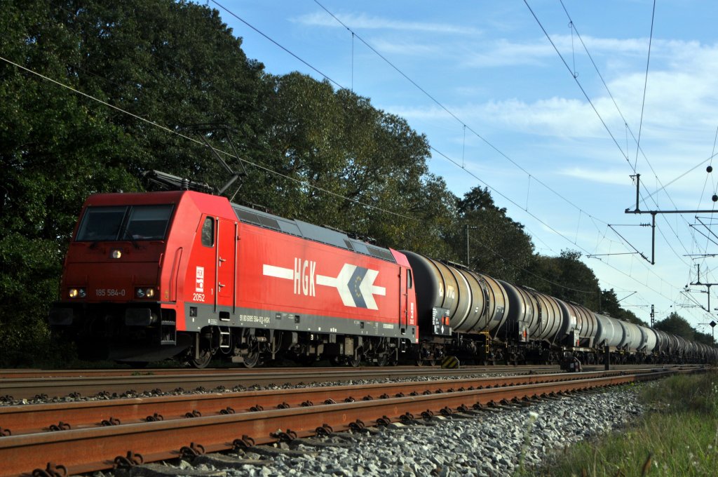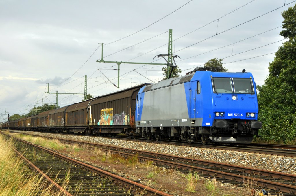 Alpha Trains Belgium 185 522, vermietet an Captrain Deutschland, mit Schiebewandwagenzug in Richtung Osnabrück (Ostercappeln, 07.08.11). Reinhard Kühn