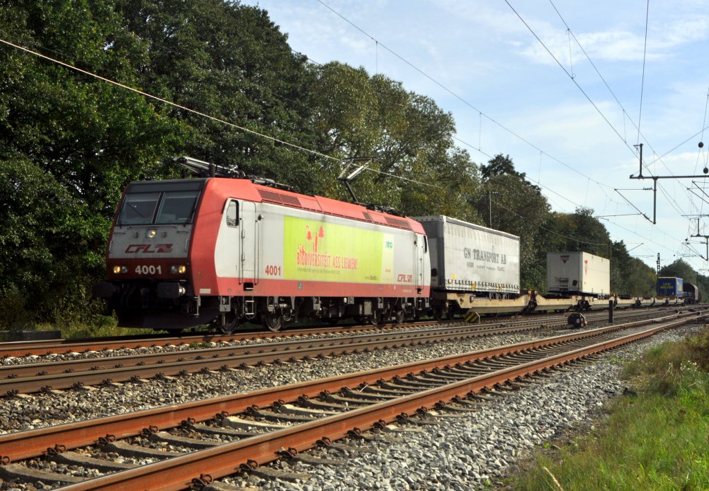 CFL 4001 "BIODIVERSIÈIT ASS LIEWEN" (zu deutsch: Biodiversität ist Leben), vermietet an CFL Cargo, mit gemischtem Kurzgüterzug Richtung Bremen (Diepholz, 24.09.11).