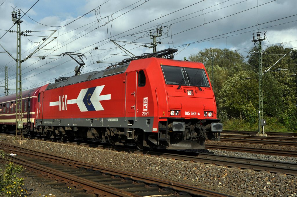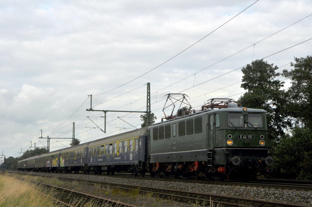 Macquarie European Rail, vermietet an HGK (2051), mit einem Touristik-Sonderzug verlässt den Bahnhof Diepholz nach einem nicht geplanten Halt in Richtung Osnabrück, 18.09.11. Reinhard Kühn