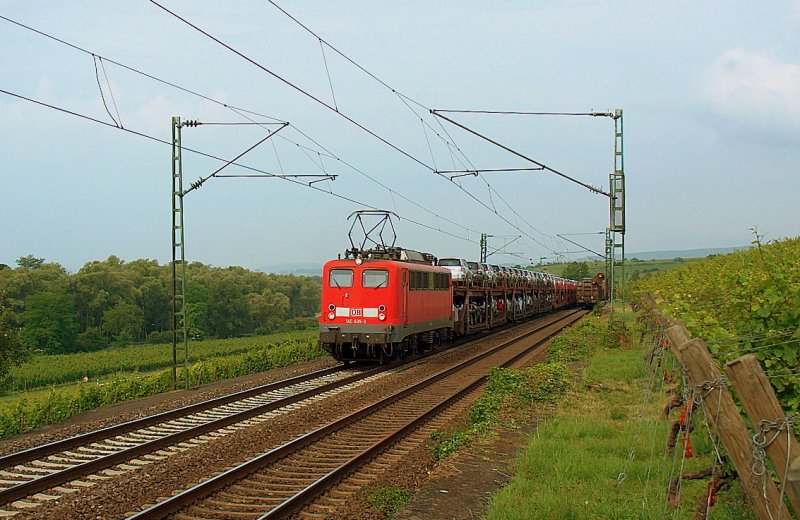DB 140 495-3 mit einem Toyota-Autotransportzug Richtung Wiesbaden, bei Erbach (Rheingau); 27.06.2009