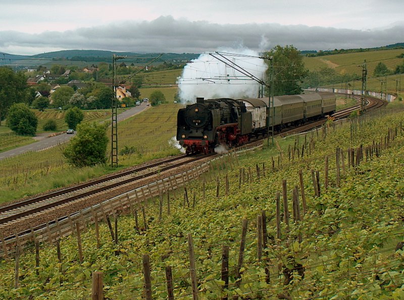 Nachschuss auf den DPE 88001 von Koblenz Hbf nach Frankfurt (Main) Süd, bei Erbach (Rheingau), gezogen von der HE 01 118 (Historische Eisenbahn Frankfurt e.V.); 11.05.2009 Frank Thomas