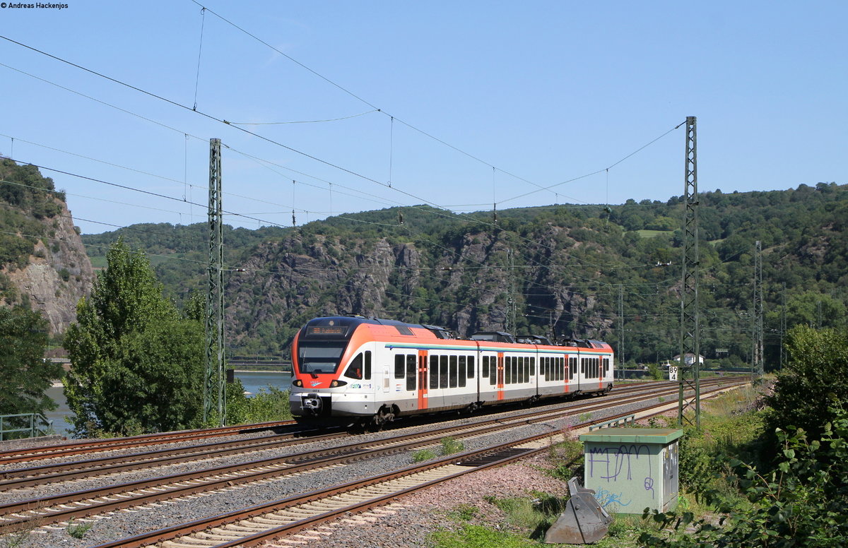 VIAS-FLIRT 301 (427 149) in Wiesbaden Hbf am 27.8.19. Eigentlich ist in dem Umlauf der RB10 Frankfurt - Neuwied im nachmittäglichen Berufsverkehr eine Kombination 427+428 vorgesehen. Bei der entstehenden Enge kommt auch bei hessischen Pendlern Freude auf. Aber warum sollte es ihnen besser gehen als denen in NRW? Hermann-Josef Weirich