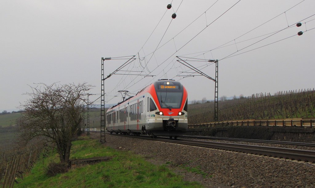 Kleines Experiment: 185 007 hat vor kurzem mit ihrem Güterzug den Bahnhof Niederwalluf durch fahren und fährt nun Wiesbaden entgegen. 11.12.2010 Sascha Götz