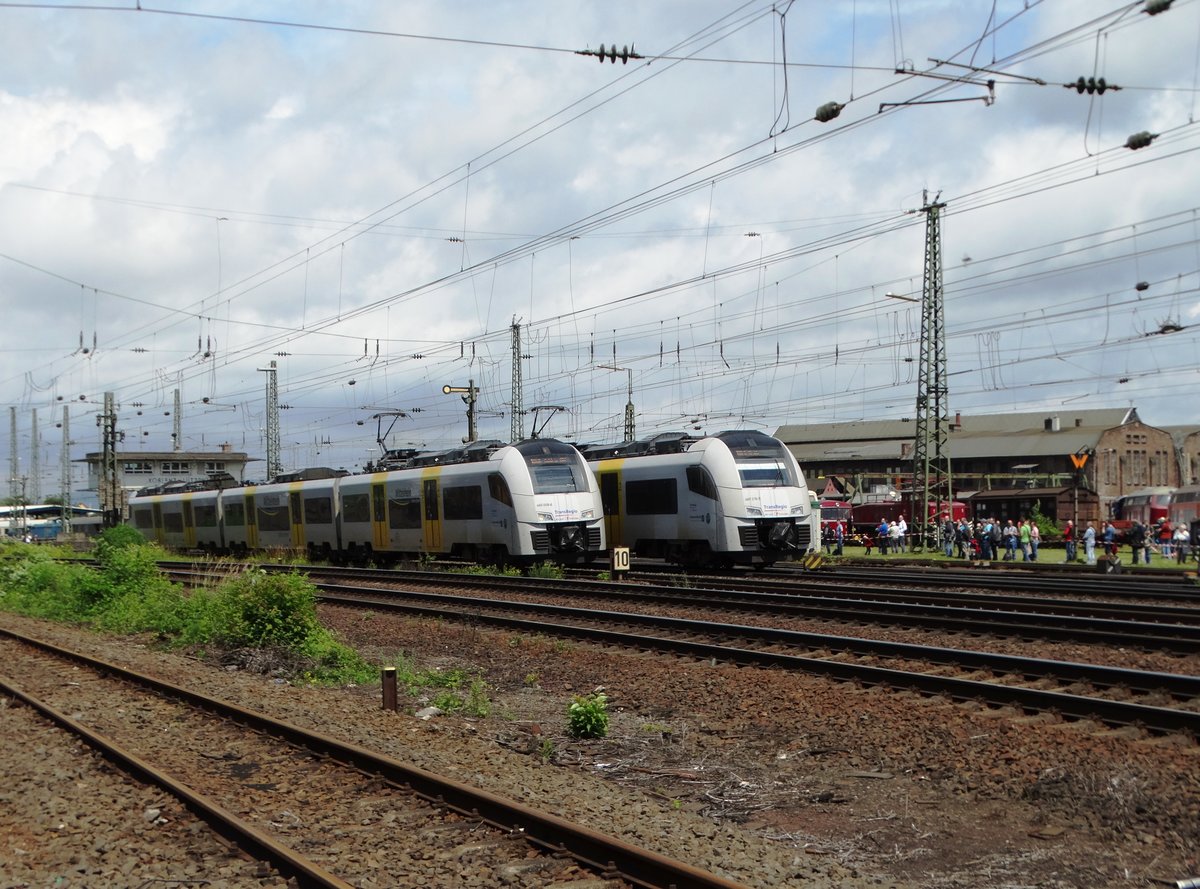 Trans Regio Mittelrheinbahn Siemens Desiro 460 008-6 und 460 016-9 treffen sich am am 18.06.16 in Koblenz von einen Gehweg aus fotografiert Daniel Oster