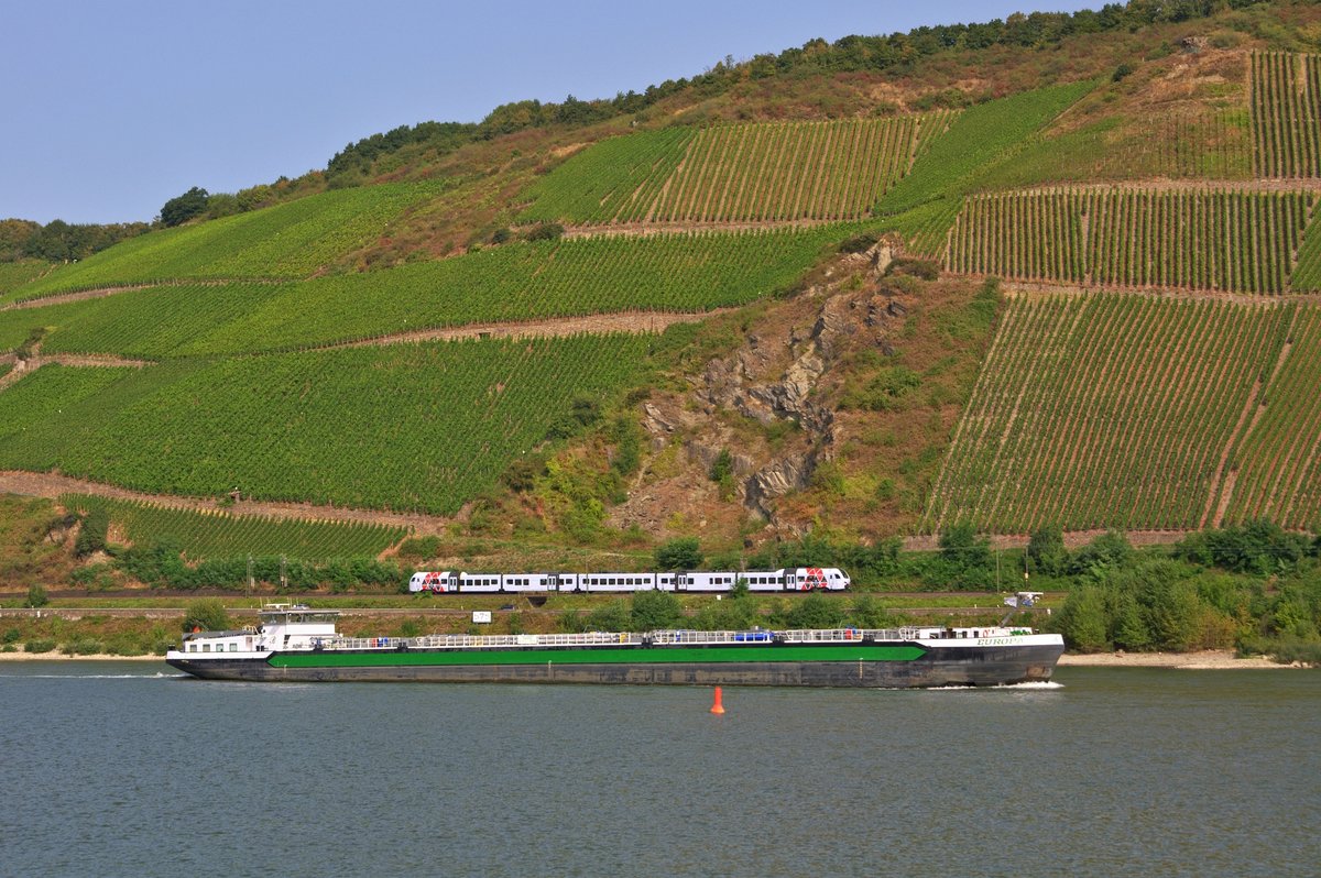 Unbekannter DB-Regio-Triebzug der BR 429 als RE 2 (4259) "SÜWEX" Koblenz Hbf - Frankfurt (Main) Hbf am Bopparder Hamm zwischen Spay und Boppard 09.09.16. Reinhard Kühn