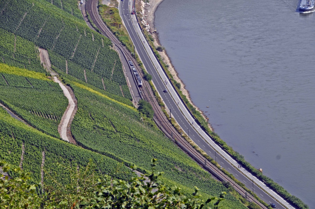 22.08.2013 Rheinschleife bei Boppard ; Blick vom Gedeonseck auf die Strecke, die gerade ein 460er von transregio in Richtung Boppard passiert Ralf Geraschewski