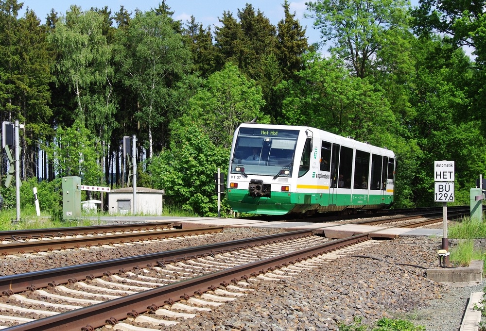 Wenigstens die Triebwagen der Vogtlandbahn halten zwischen Hof und Reichenbach noch an jeder Station der KBS 530 bzw. 545.