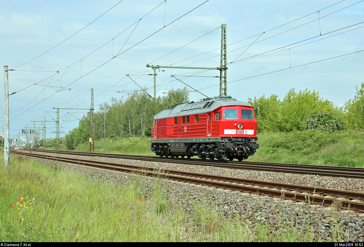 233 636-0 DB als Tfzf fährt in Halle-Kanena/Bruckdorf auf der Bahnstrecke Magdeburg–Leipzig (KBS 340) Richtung Halle (Saale).