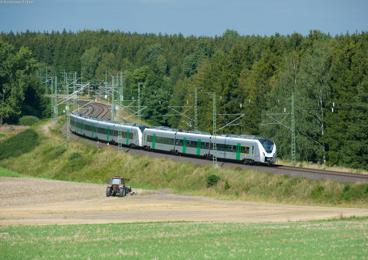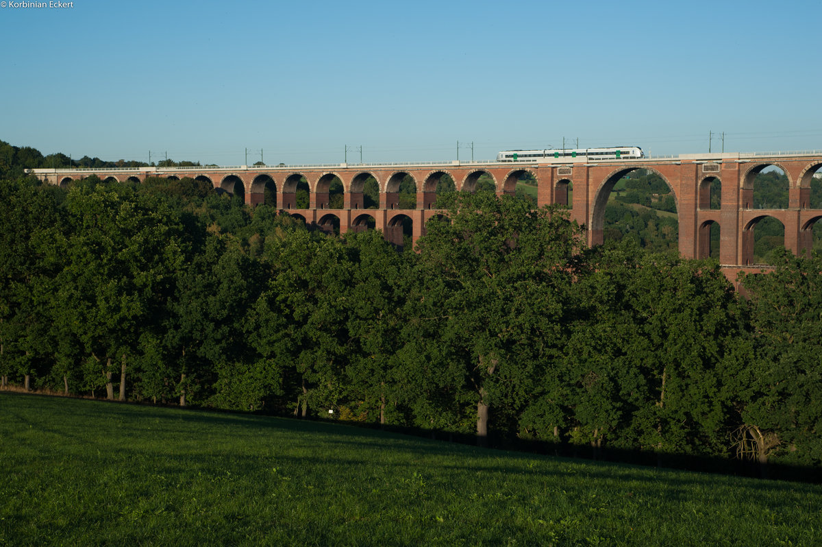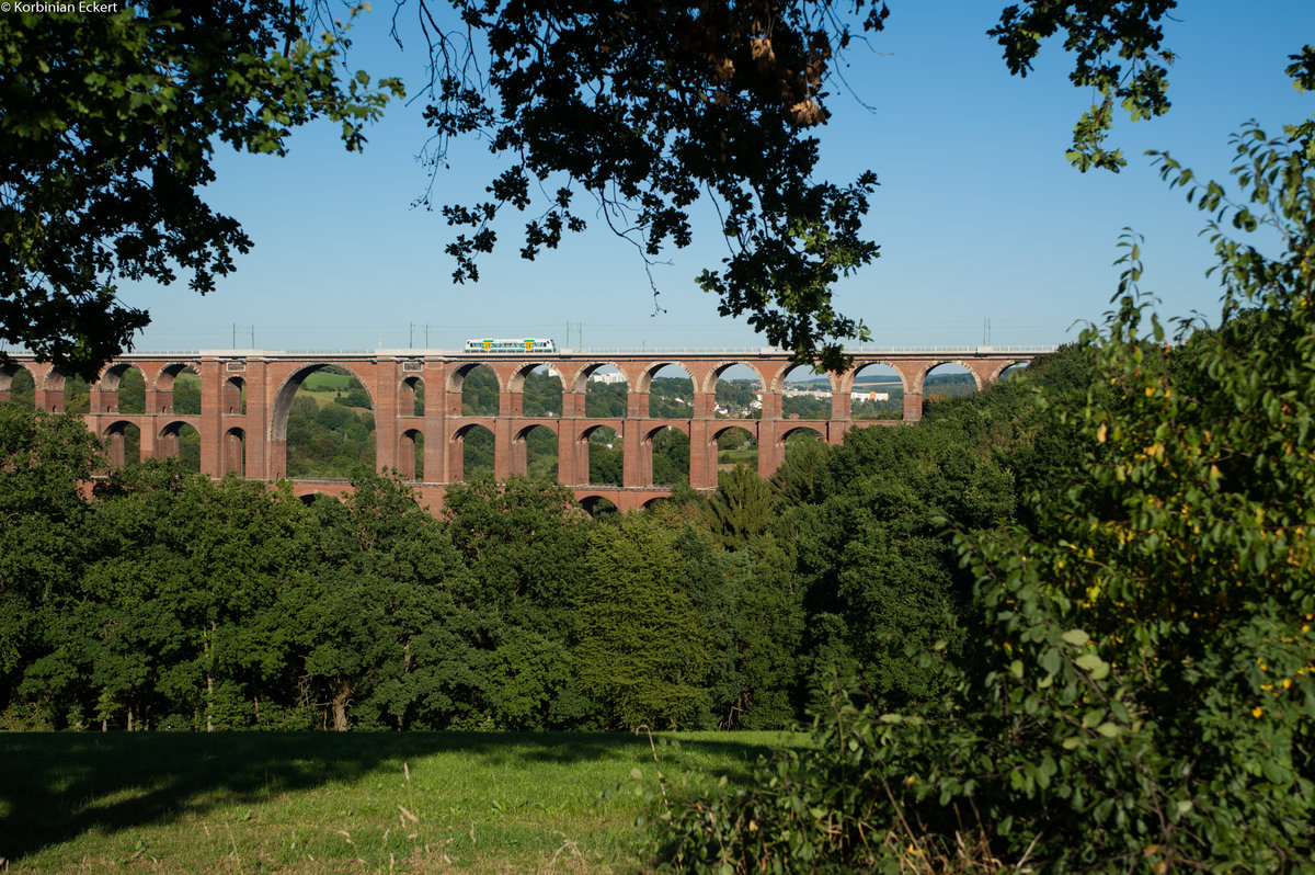 Regionalexpress von Hof nach Dresden auf der Elstertalbrücke mit einem 3 und 5 Teiler 1440. Aufgenommen am 01.05.2017 in Jocketa/Pöhl Andreas Schreiber