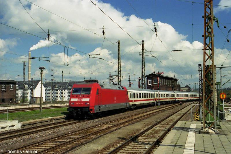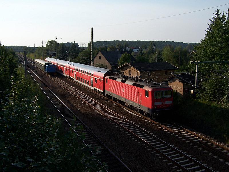 Am 18.04.1996 erreicht 143 268-1 mit der RB 14843 Zwickau (Sachs) Hbf - Flöha (Sachs) den Bahnhof Chemnitz Hbf. Vorher muß sie noch den Dresdner Platz unterqueren. Um Kosten für die Sanierung/den Neubau der Brücke des Dresdner Platzes entstand zwischen der Stadt Chemnitz und der DBAG ein Streit. Fakt ist: Die Busse der CVAG (Linien 21 Richtung Ebersdorf und 31 Richtung Yorckgebiet und zurück) dürfen nur noch bis Ende 2007 mit Sondergenehmigung über die Brücke fahren, danach hat diwe CVAG ein Problem... Olaf Just