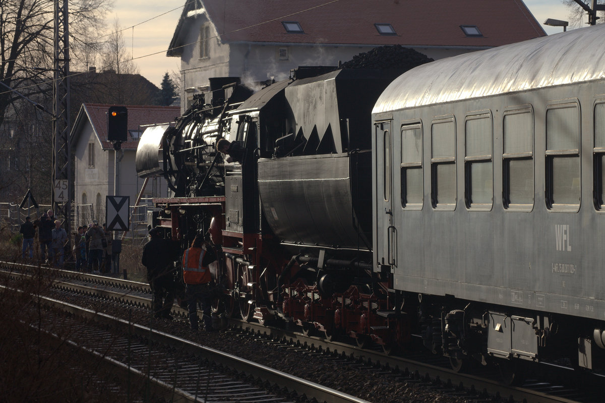 "Ja, ist denn heut scho Weihnachten": Der "Holzroller" E 11 013 (211 013-8) Interessengemeinschaft Traditionslok 58 3047 e.V. (IGTL, BW Glauchau/Sachsen) war am 22.03.2025 mit zwei Alexwagen auf einer Ausbildungsfahrt von Neumark (Sachs) über Röderau nach Leipzig Hbf u. z. unterwegs, als der Zug am Nachmittag bei der Rückfahrt den "Schwibbogen" in Ottendorf bei Mittweida passierte. Matthias Kümmel