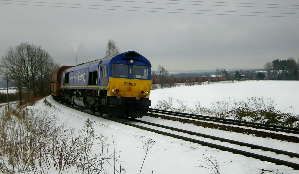 am 1.3.13 zog die 29005 ihren leeren Kohlezug aus dem Heizkraftwerk Chemnitz Richtung Tagebau Profen, hier noch mit schöner weißen Landschaft in der Kurve kurz vor Wittgensdorf Silvio Hass