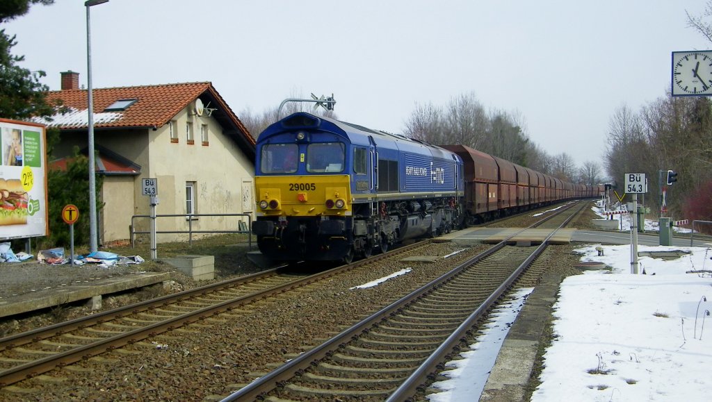 Class 66 Nr. 29005 zog am 27.3.13 bei leichtem Sonnenschein (endlich) ihren leeren Kohlezug aus dem HKW Chemnitz durch den Hp Wittgensdorf-Mitte Richtung Endziel Tagebau Profen Silvio Hass