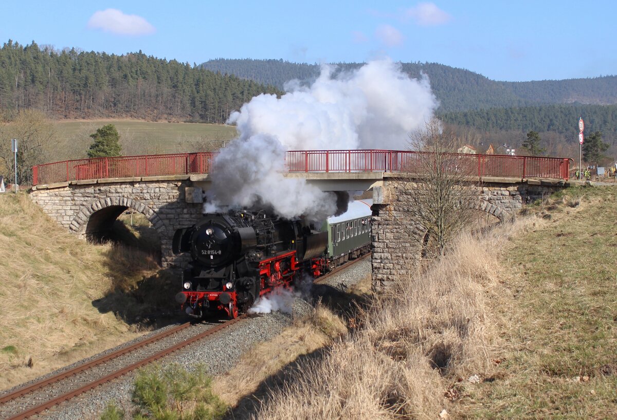 Auf großer Thüringen-Rundfahrt war am 9.4.2022 die 50 3501 vom Meininger Dampflok Verein e.V. (MDV). Nach "Kopfmachen" in Saalfeld/Saale ging es rückwärts in Richtung Arnstadt. Hier bei der Durchfahrt durch den Bahnhof von Bad Blankenburg Markus Klausnitzer