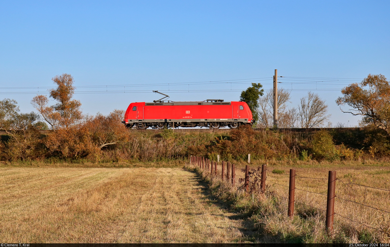 Nachschuss auf die als Tfzf Richtung Halle-Ammendorf fahrende 185 187-2 in der Saale-Elster-Aue bei Schkopau.