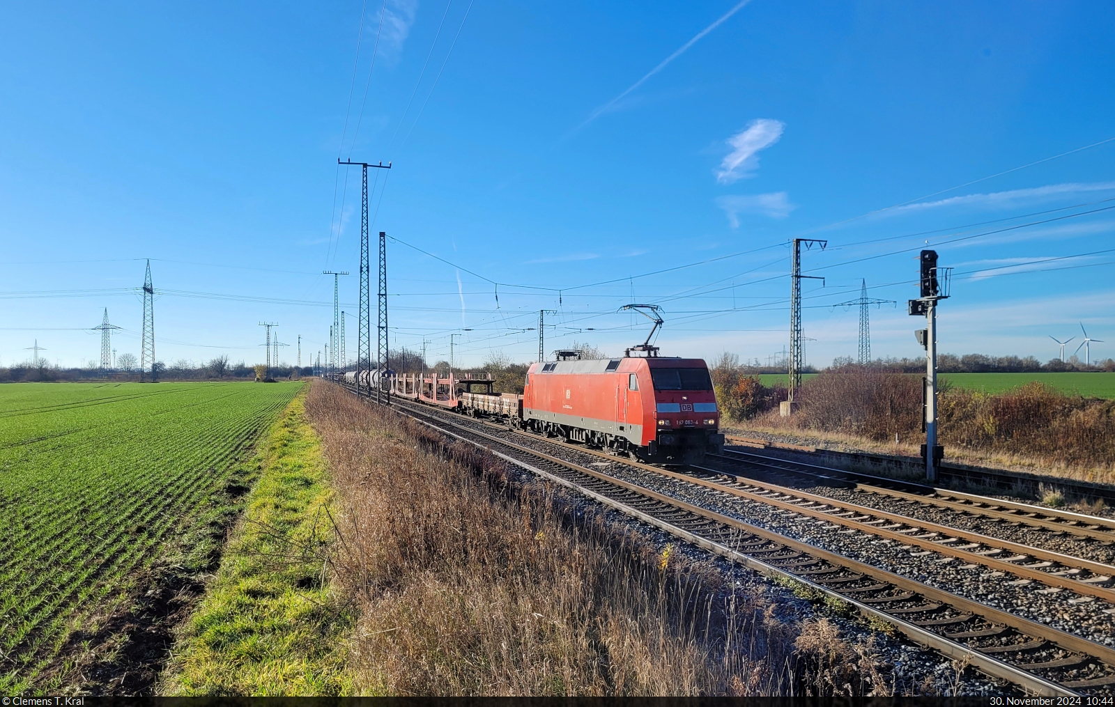 Mit Getreidewagen und im Diesel-Modus fährt 2159 227-8 (Stadler Eurodual) am kalten, aber klaren letzten November-Tag durch Großkorbetha Richtung Weißenfels.