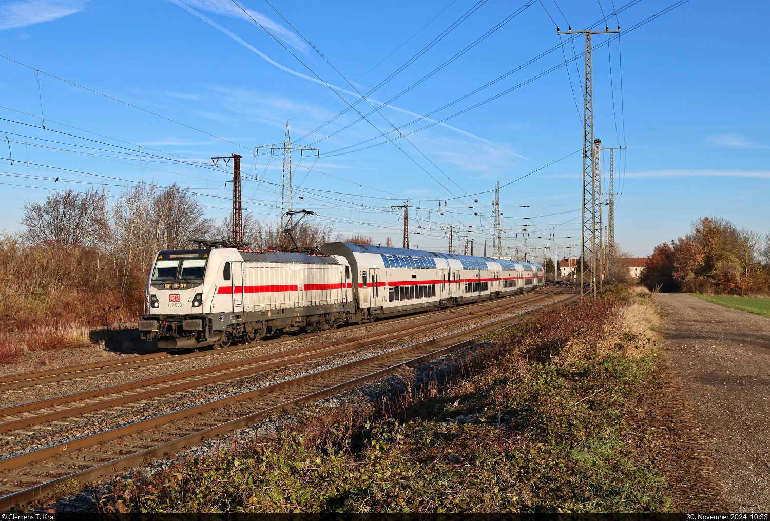 IC2 mit 147 583-9 nach der verspäteten Durchfahrt des Bahnhofs Großkorbetha.